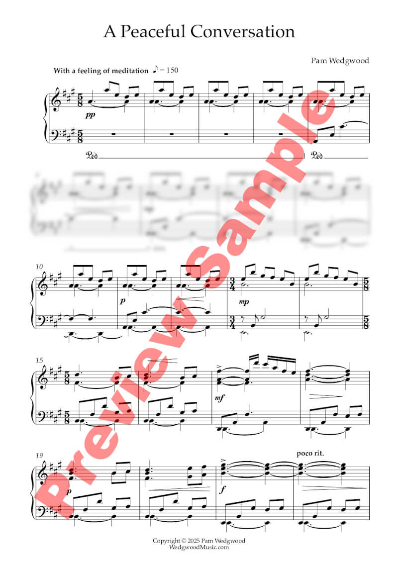 Sometimes music doesn’t need to rush or impress — it simply needs to breathe. A Peaceful Conversation is a beautifully calming Neo-classical piano solo from Pam Wedgwood’s Conversations suite, inviting intermediate players to slow down, centre themselves, and enjoy a moment of quiet musical reflection.