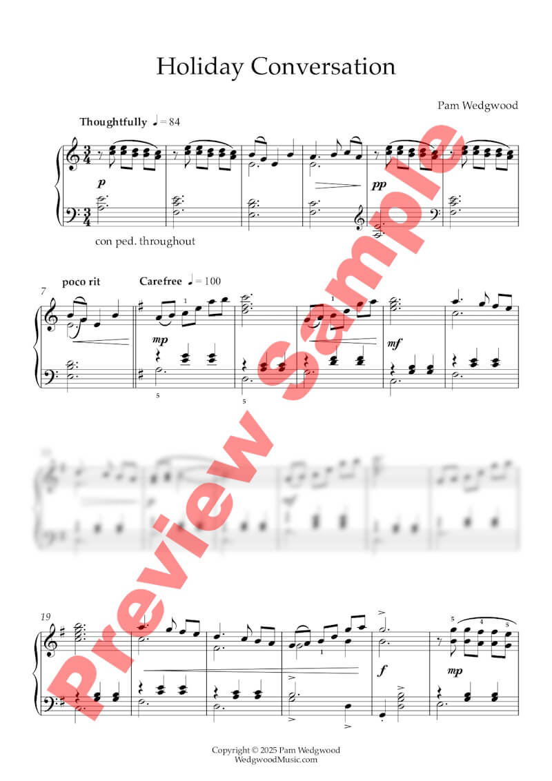 There’s a suitcase waiting by the piano — and this piece is your ticket to a musical getaway! Holiday Conversation is a charming and carefree addition to Pam Wedgwood’s Conversations suite, blending elegance and fun in true neo-classical style. This piece will suit players at the intermediate level.